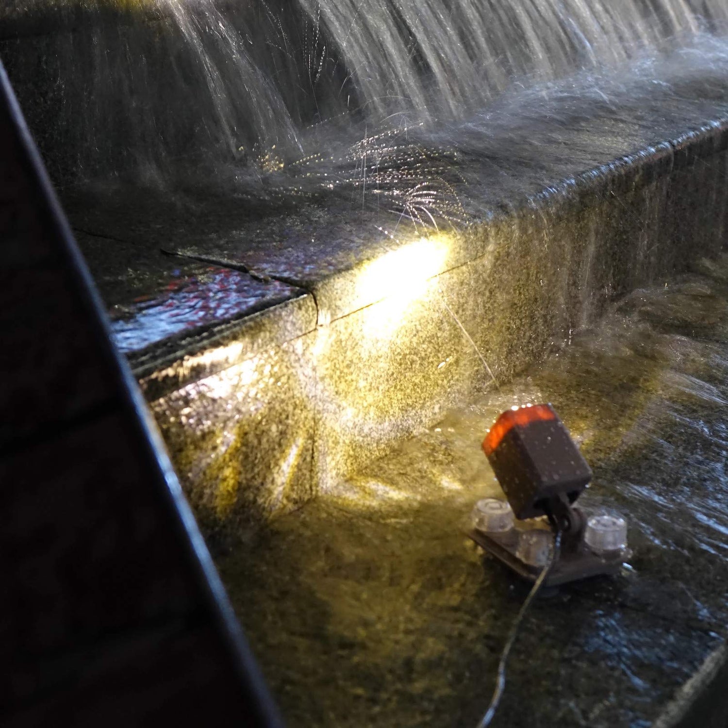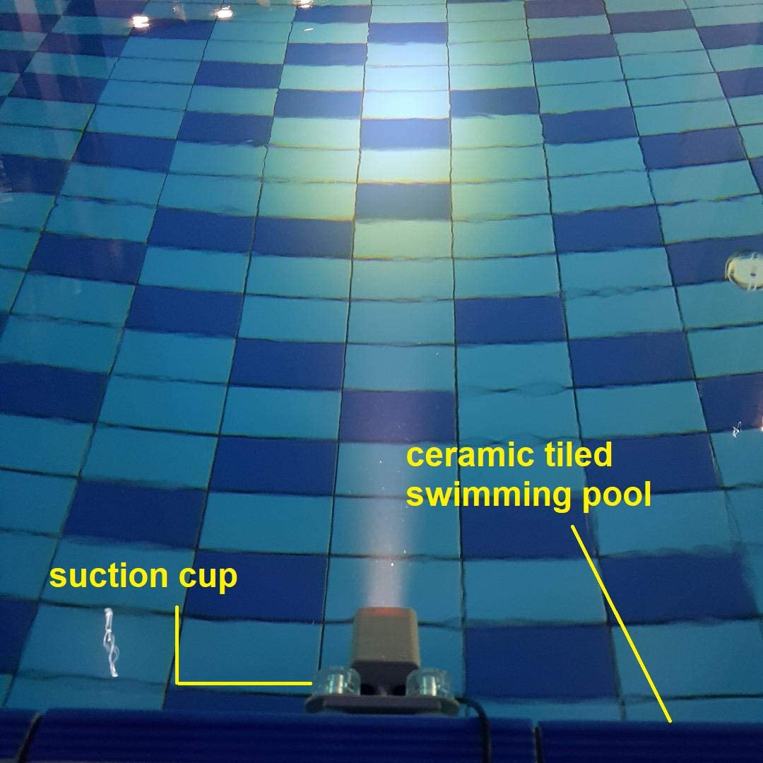 - Heavy base with suction cups enable under water placement.