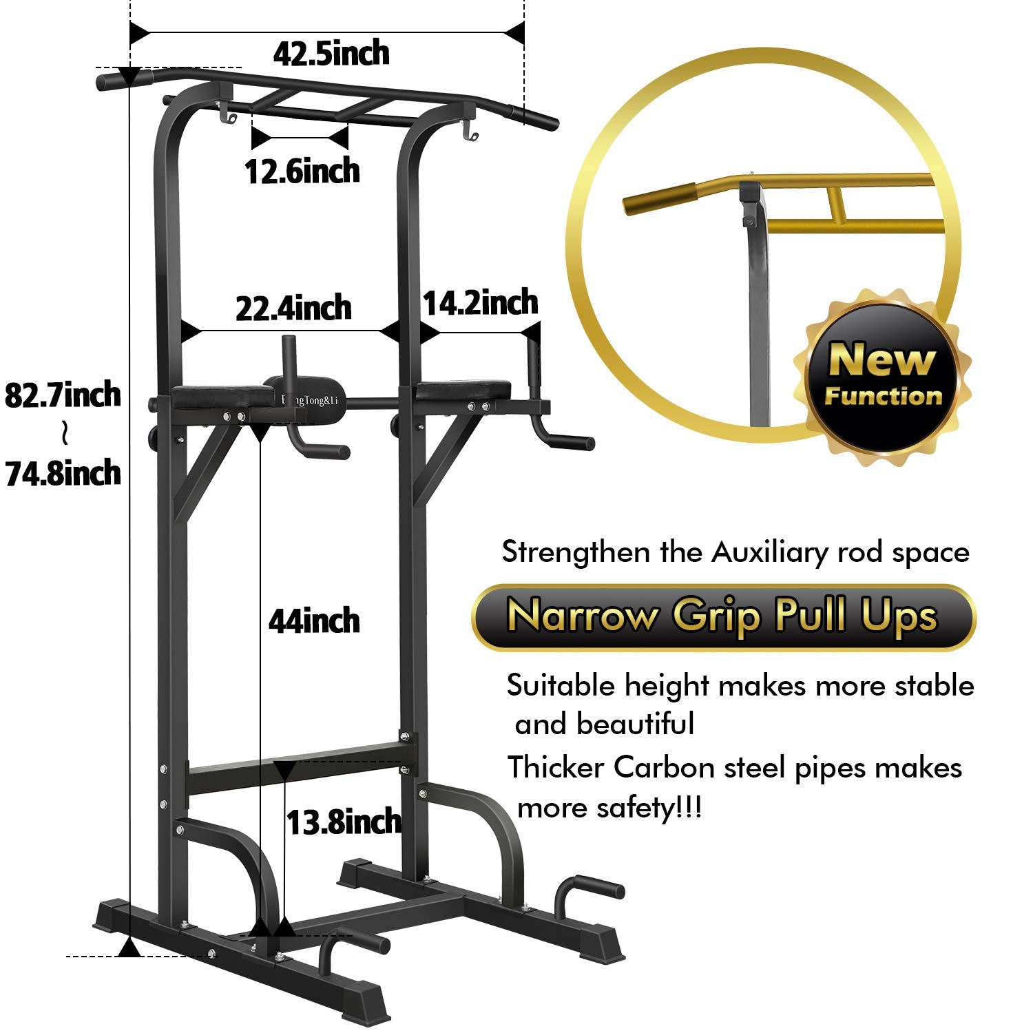 - High Quality Guarantee The sturdy power tower is made of a thick heavy-duty steel structure with high-density foam rubber handles and handrails. All nuts are non-slip nuts. To prevent the nut from falling during vibration.
