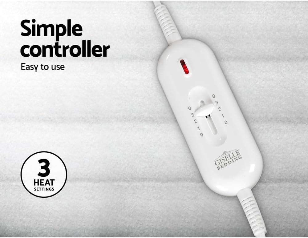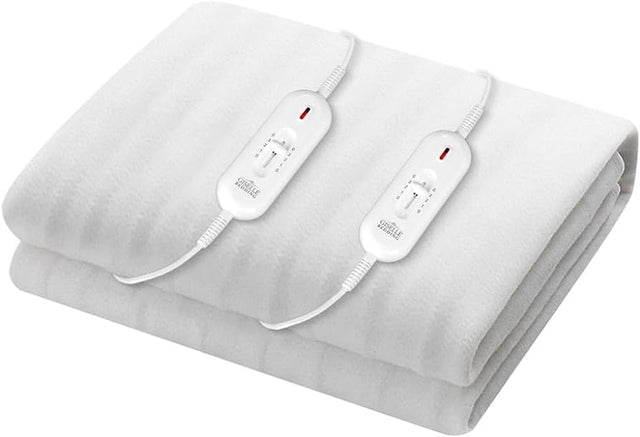 Bedding Electric Blanket, Queen Heated Blankets Heating Pad Throw Rug Underlay Fleece Wool Winter Washable for Bed, Fully Fitted 3 Temperature Levels Dual Remote Controllers White