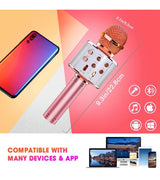 - ♪ 4 in 1 Karaoke Microphone: Portable hand-held wireless microphones can be used as microphone, Bluetooth speaker, loudspeaker, recorder. Mini home KTV for music playing and singing at any time.