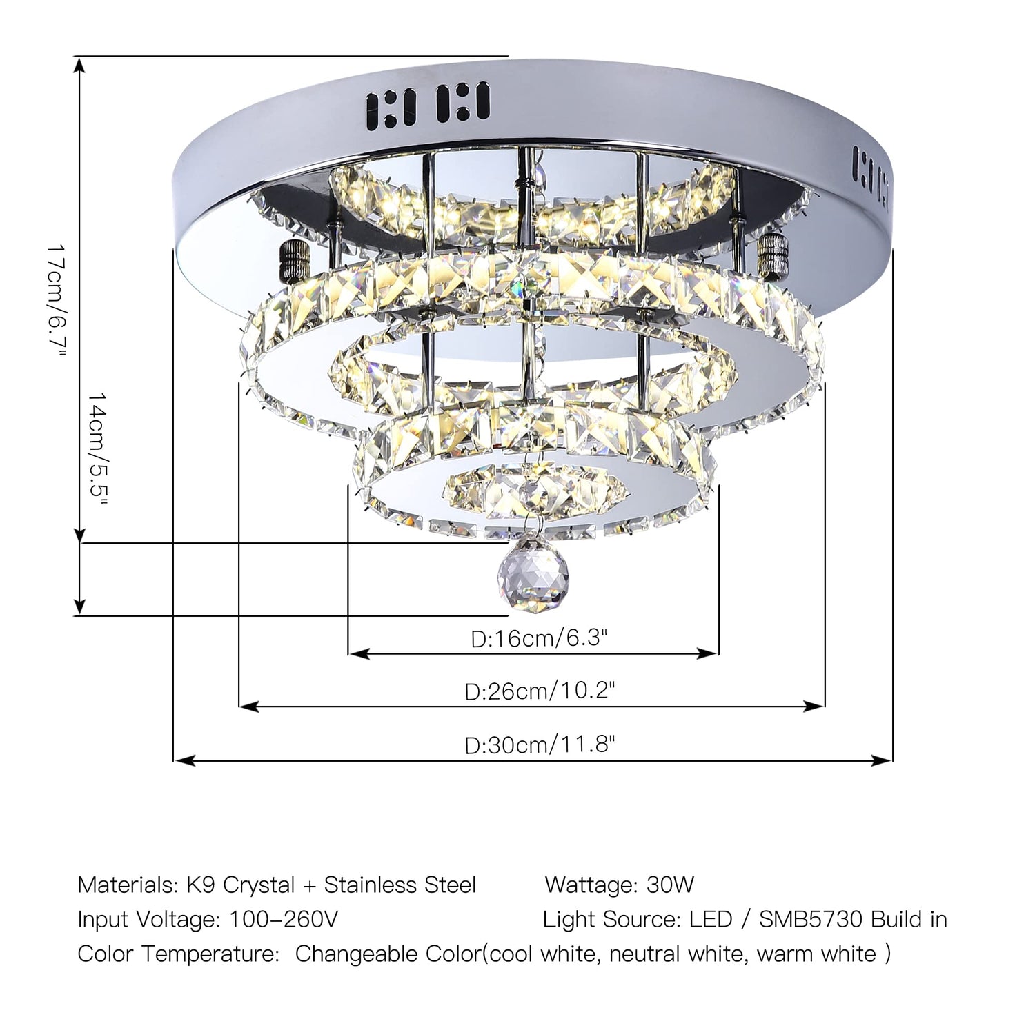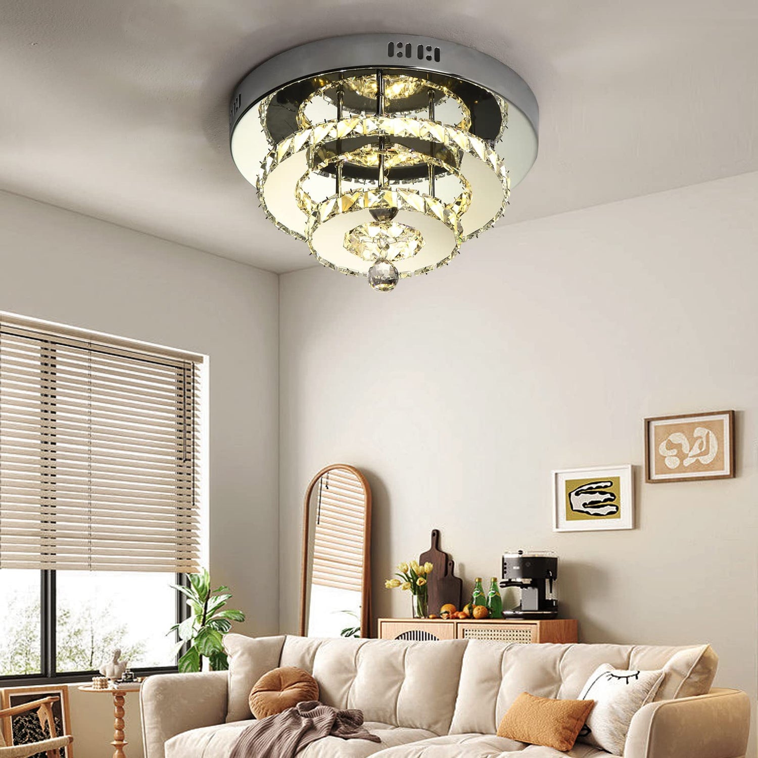 Crystal LED Ceiling Light, Ceiling Crystal Lamp Stainless Steel K9 Modern Flush Mount Lights Fixture 2 Layers Round Chandelier Ceiling Lamp for Dining Room Living Room Bedroom is backordered and will ship as soon as it is back in stock.
