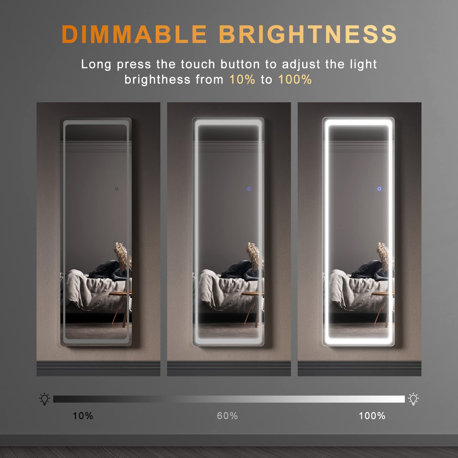 LED Floor Mirror, Wall Mounted Hanging Mirror with Lights, LED Lighted Full Body Dressing Mirror, Large Vanity Mirror for Bedroom 160 x 50 cm