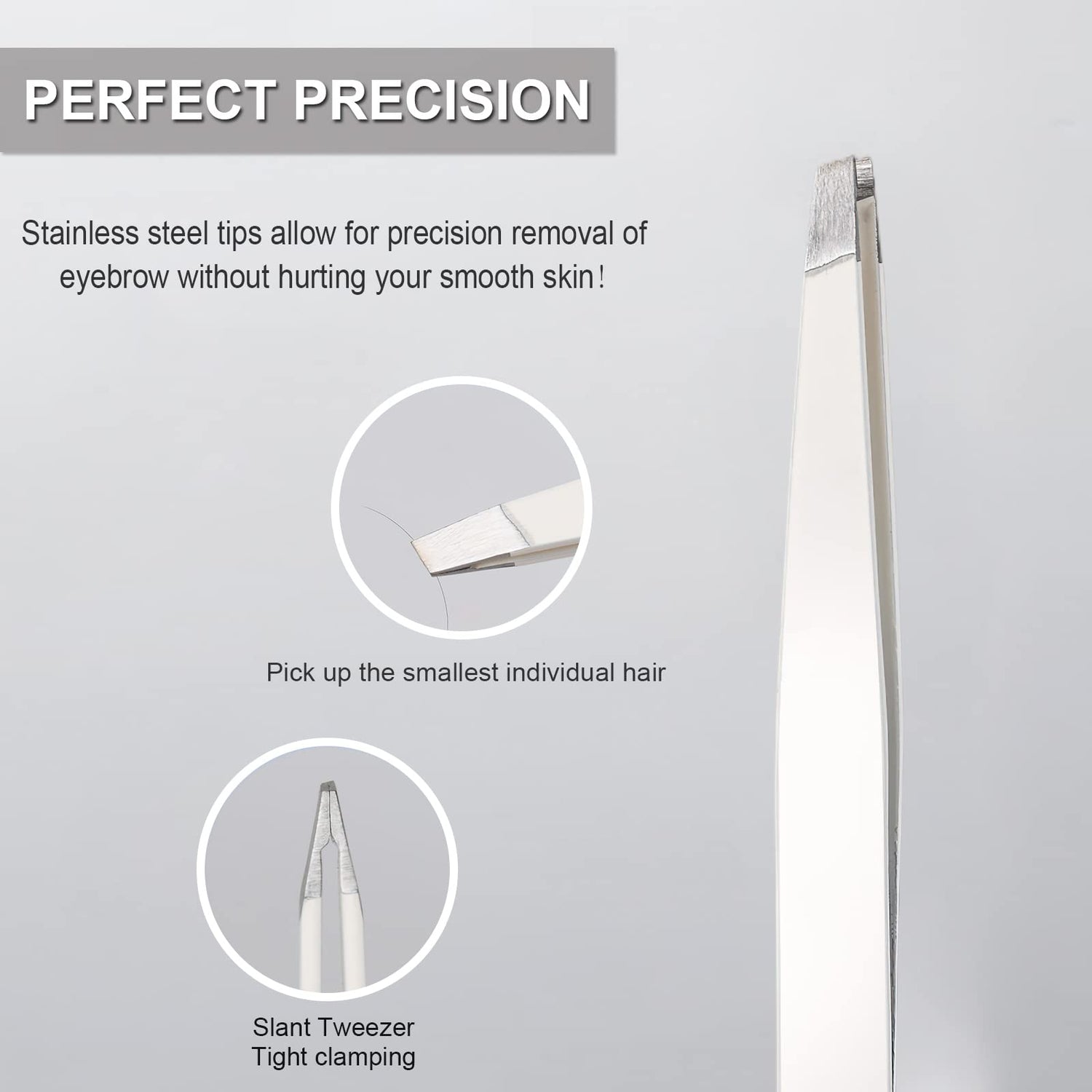 - Eyebrow Tweezer: The tweezers have a slanted top for easy removal of fine hair. The tips of these tweezers are sharp and the tweezers tip can be closed tightly without leaving a gap, allowing you to accurately clamp the roots of the hairs, and easily remove stubborn and small hairs.