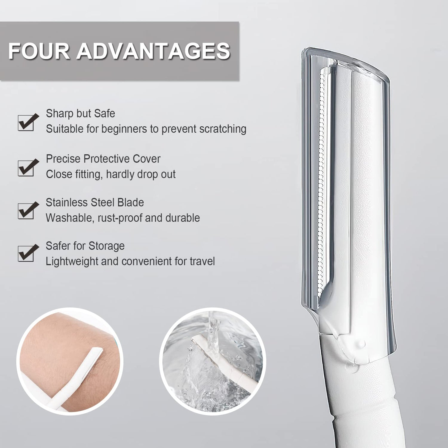 - Multifunction Eyebrow Razo: It can achieve hair removal, exfoliation, eyebrow razor, eyebrow shaper, face shaver, men's shaving razors, and women's bikini trimmers. It is a good choice for beginners to use on all areas of the face whether it’s the forehead, cheeks, chin, eyebrow, or upper lip areas, even can be used in the neck or elsewhere with any unnecessary hairs.