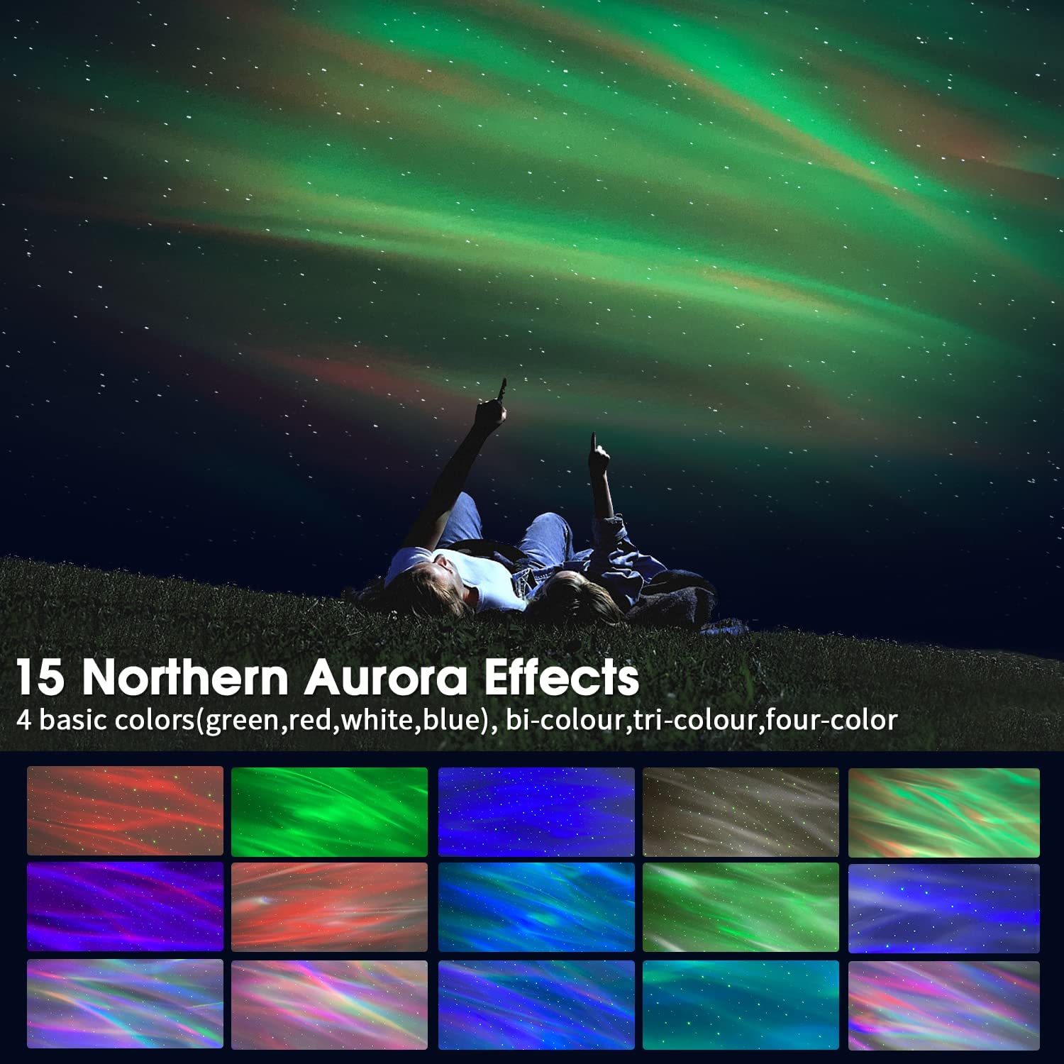 - Multi-Colour and Multi-Control Mode: Aurora projection is composed of four basic colours: white, red, blue, and green, with multiple colour patterns and adjustable brightness. It can be controlled by connecting the mobile phone APP and Bluetooth remote control, or it can be controlled by Alexa. CEUCAL makes your life smarter.