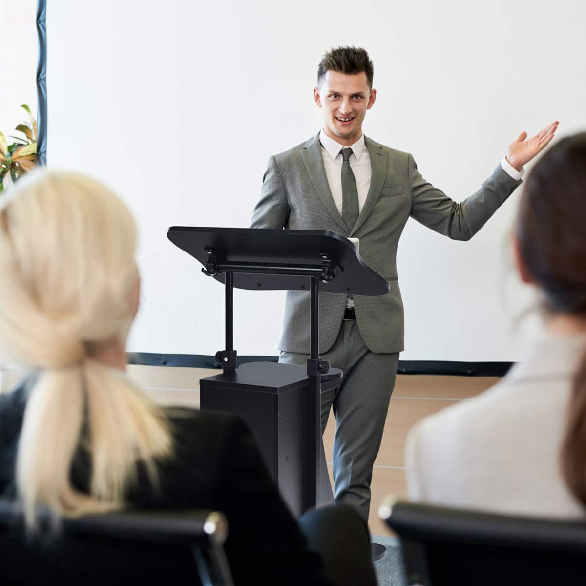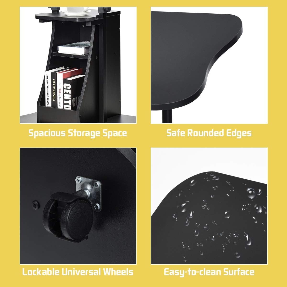 Mobile Laptop Desk, Height Adjustable Computer iPad PC Stand Table w/Wheels & Storage, Mobile Podium Stand, Sit-to-Stand Rolling Stand Laptop Desk Cart for Home Office Classroom, Black