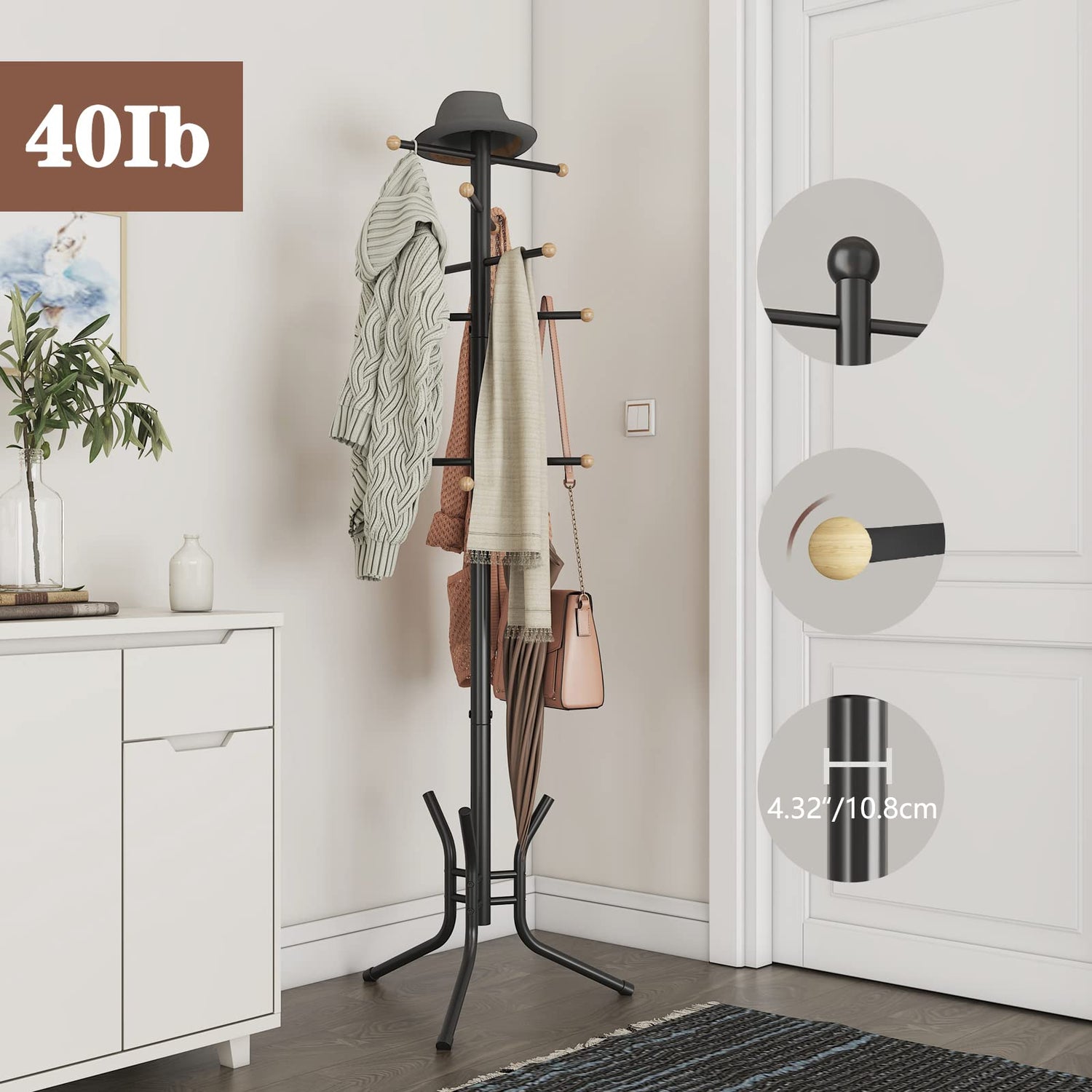 12 Hooks Coat Rack, Free Standing Hat Hanger for Clothes, Handbags, Easy to Assemble, Hat Stand for Home, Office, Hallway, Entryway, Bedroom, Umbrella Tree Stand, Black