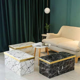 Faux Leather Folding Storage Ottoman Bench Footrest Seat Chest,Savings Storage Bench for Bedroom Living Room Hallway (White Black Marbled, 110L)