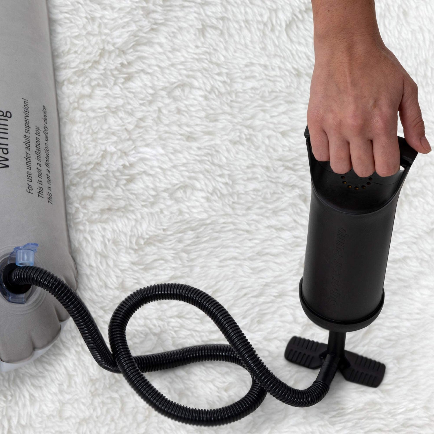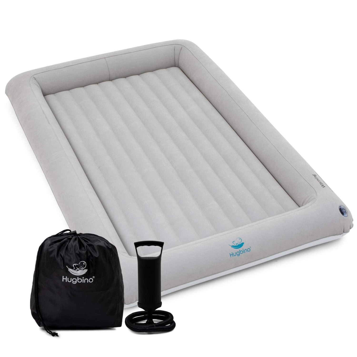 - INTERNATIONAL HAND PUMP: Blowing up a travel bed for toddlers can be a difficult job, but the travelling toddler bed comes equipped with a battery-free international hand pump that allows for easy inflation and works anywhere regardless of international power supplies.