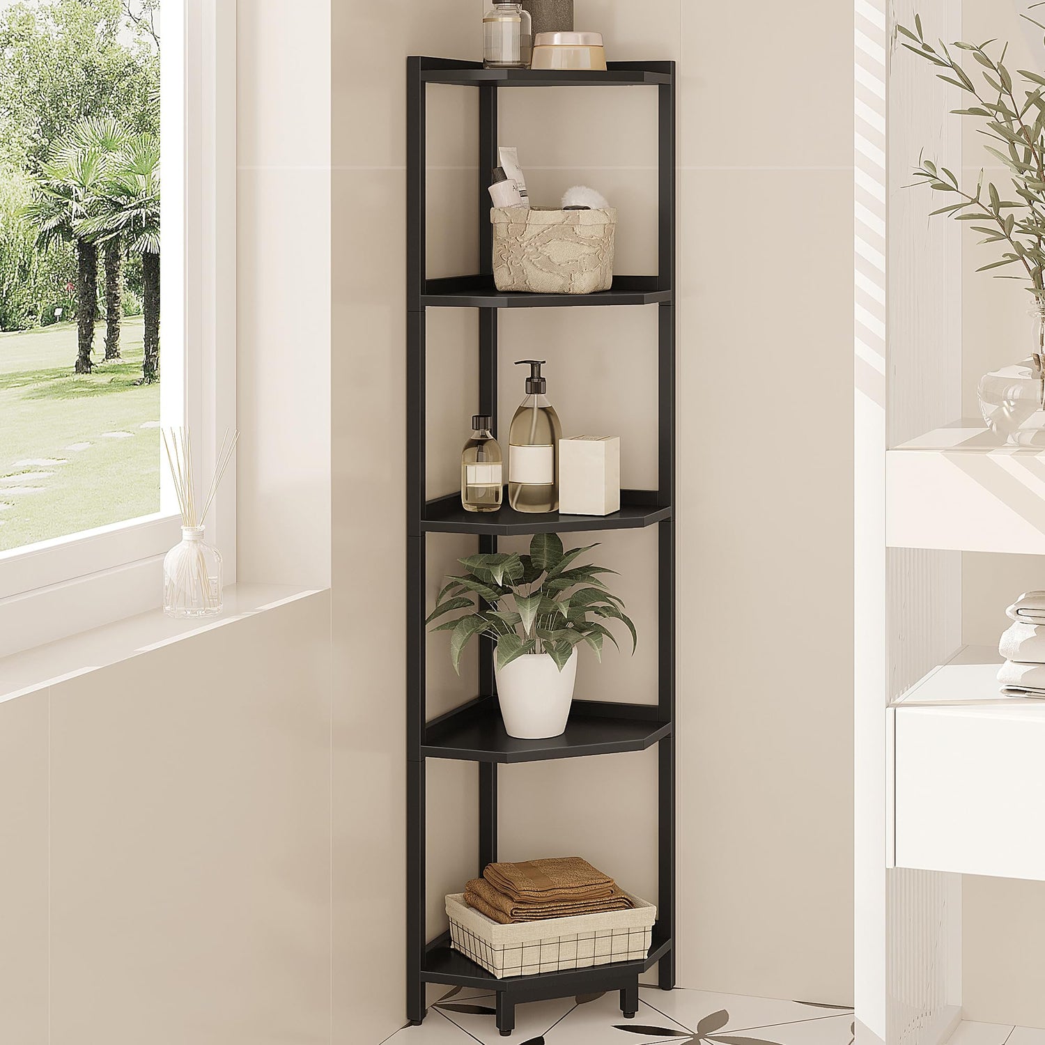 Corner Shelf Stand, Corner Bookshelf, Storage Standing Shelf Unit with Metal Frame, Plant Stand, Corner Bookcase for Living Room, Home Office, Bedroom