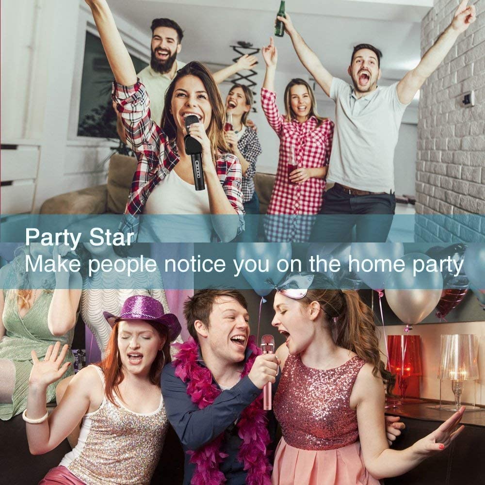 - ♪ Bluetooth 5.0: The karaoke microphone is compatible with all smart devices with Bluetooth function