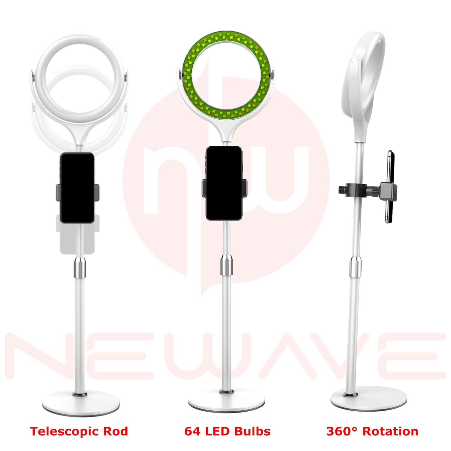 • Smart Design: Both ring light and phone clip can be freely rotated (360° angle) to suit your various needs. The telescopic rod design enables free adjustment of height, while the roundel base design ensures a stable setup of the kit.