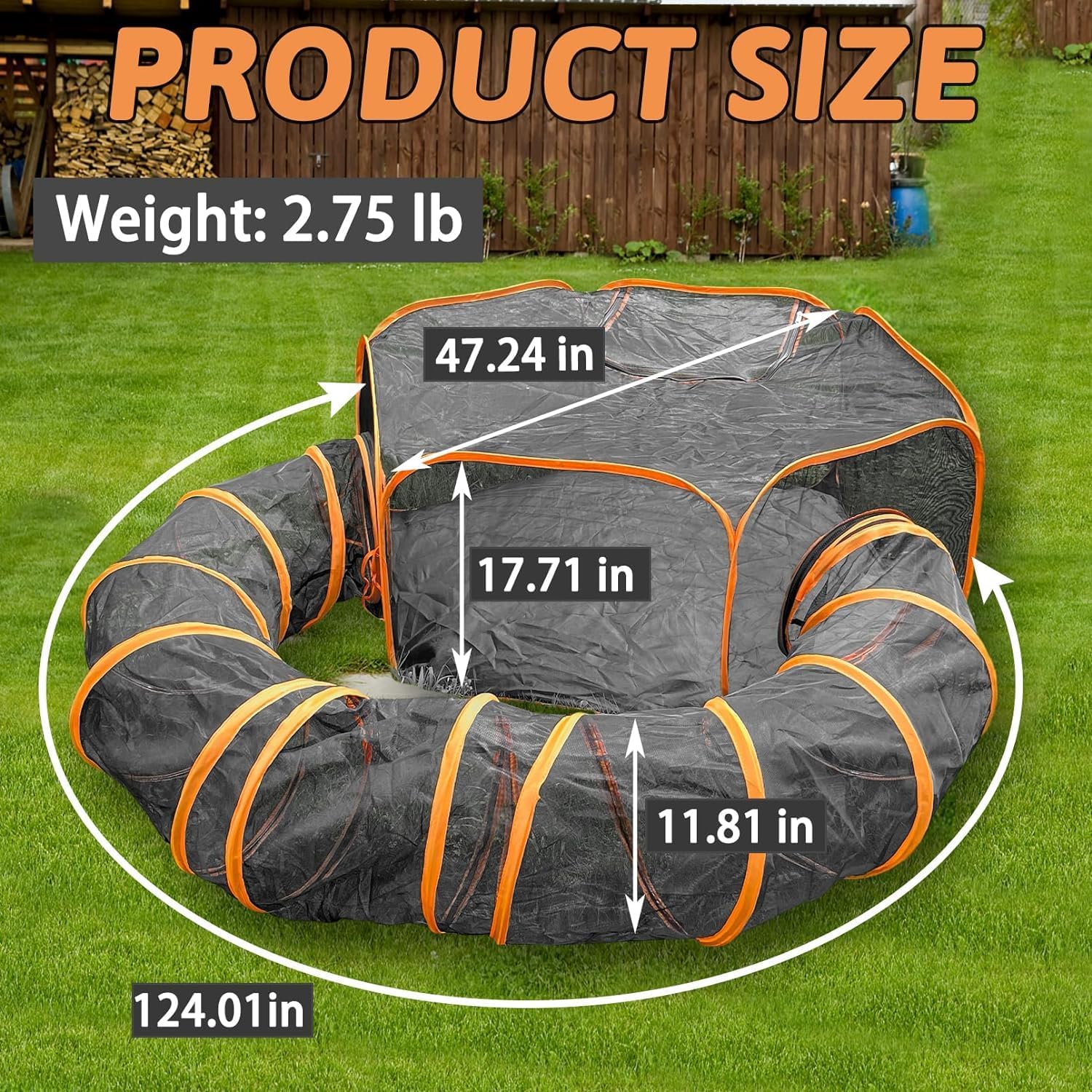 Outdoor Cat Enclosures, Portable Cat Tent for Outside Cat Playpen Enclosed with Tunnel, Small Animal Playpen Guinea Pig Rabbit Cage,Pop Open Exercise Yard Fence with Top Cover