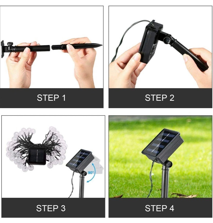 - Crystal Ball Fairy Lights - Auto on at dusk/Auto off at dawn. Powered by solar panel, after 6-8 hours fully charged under direct sunlight, transform solar energy to electric energy and stock into storage battery, can work continuously for 8-12 hours.