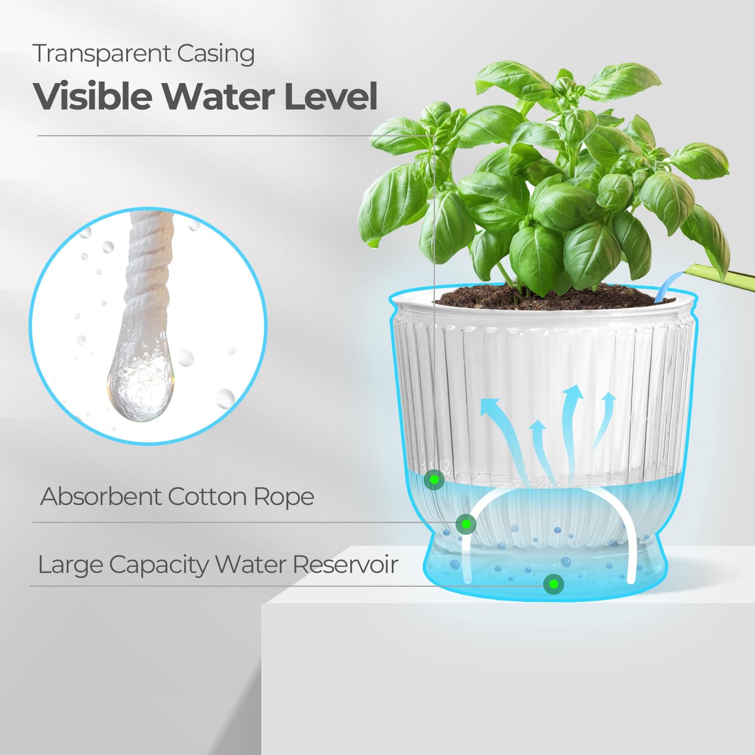 - Visible Water Level: Crafted from premium, transparent PET material, our flower pots make it easy to monitor the water level. This ensures you never forget to refill the water, maintaining optimal hydration for your plants whether indoors or outdoors.