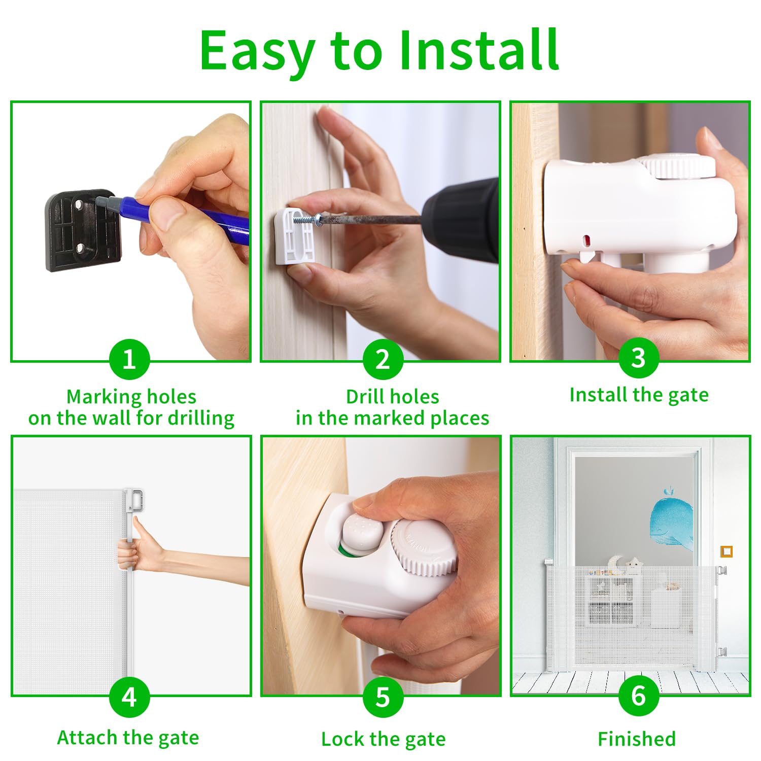 - Smart Retractable Baby Gate: The innovative retractable design of our retractable baby gate extends up to 180CM wide and 86CM tall, adjusting perfectly to fit your doorway or stairway. When not in use, the mesh gate can be fully retracted, offering a practical solution for high-traffic areas without taking up extra space.