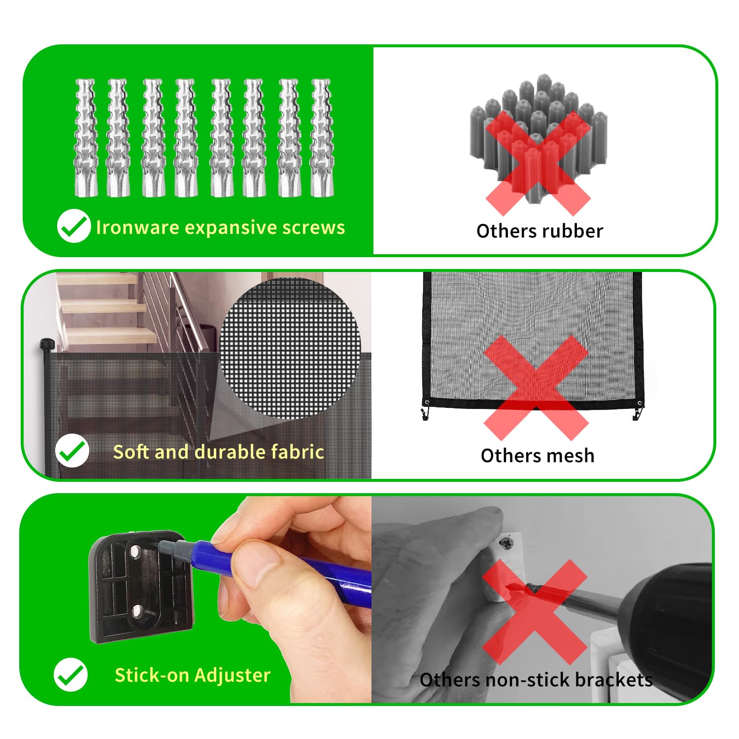 - Quick & Easy Installation: This dog gate for stairs is designed for hassle-free installation. It comes with all the necessary hardware, including screws, brackets, wall anchors. You can have your new safety gate installed within minutes, no professional help needed.